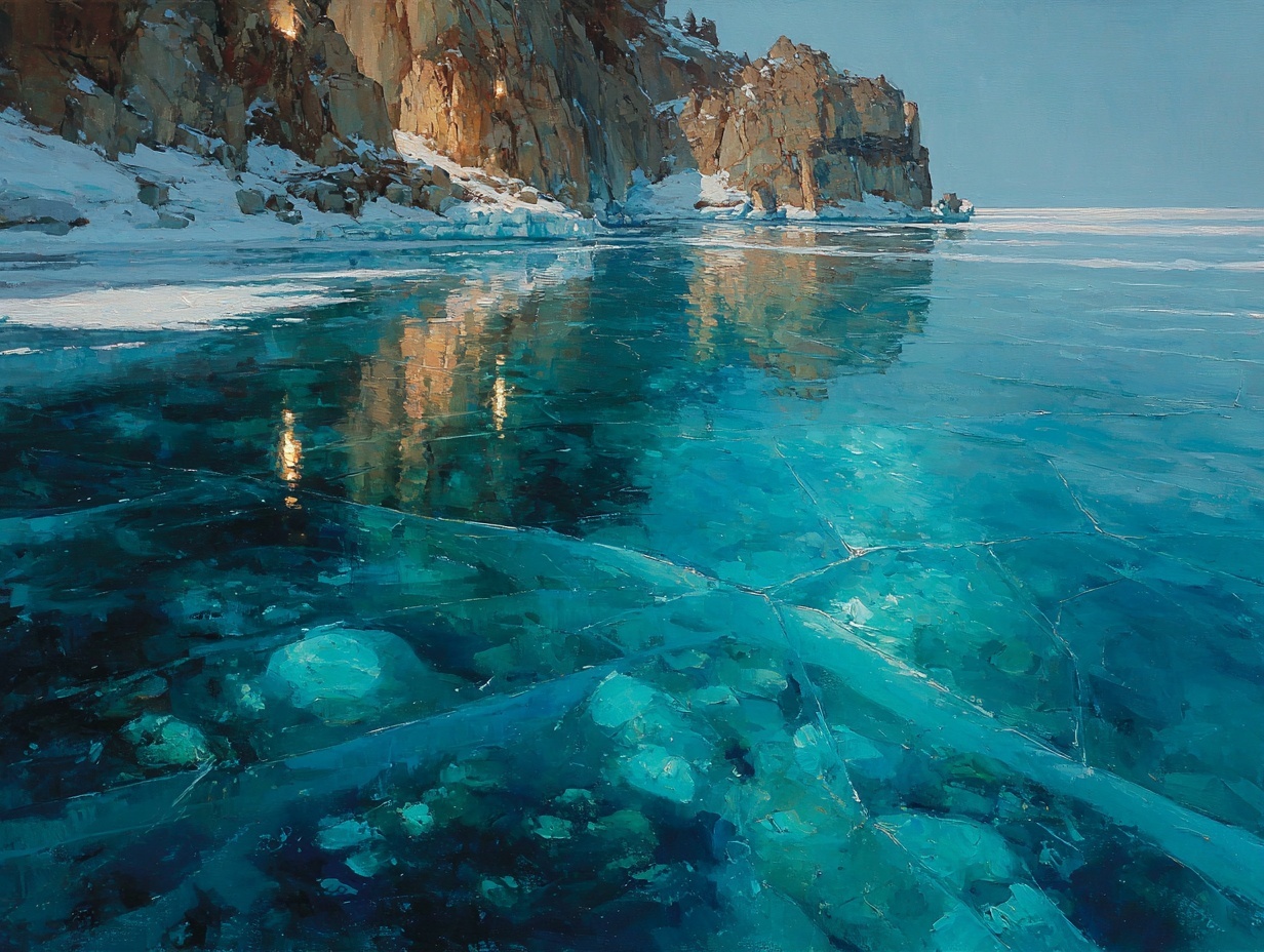 На этом занятии вы научитесь передавать прозрачную глубину ледяной поверхности: трещины, бирюзовые переливы, подлёдные камни и отражения скал. Разберём, как сочетать плотные мазки с гладкостью льда, как создавать чистые цветовые переходы и иллюзию толщины замёрзшей воды.